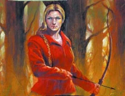 She also parallels Aphrodite (loosely) thanks to her golden hair (Aphrodite is called the Golden One) and thanks to her love of Gaidal Cain who is decidedly ugly (Aphrodite marries Hephaestus the ugliest of the Greek gods). Though this is a much looser parallel since Aphrodite was unhappy in her marriage where Birgitte is very happy. Her rebirth through being torn from the World of Dreams is also a loose parallel of Aphrodite's birth from the sea since both emerge into the world nude and fully formed. When she was reborn, she asked to go by the alias Maerion, stating "I was called that, once." The name Maerion is phonetically similar to Maid Marian↗, another Robin Hood character, who was also an archer.