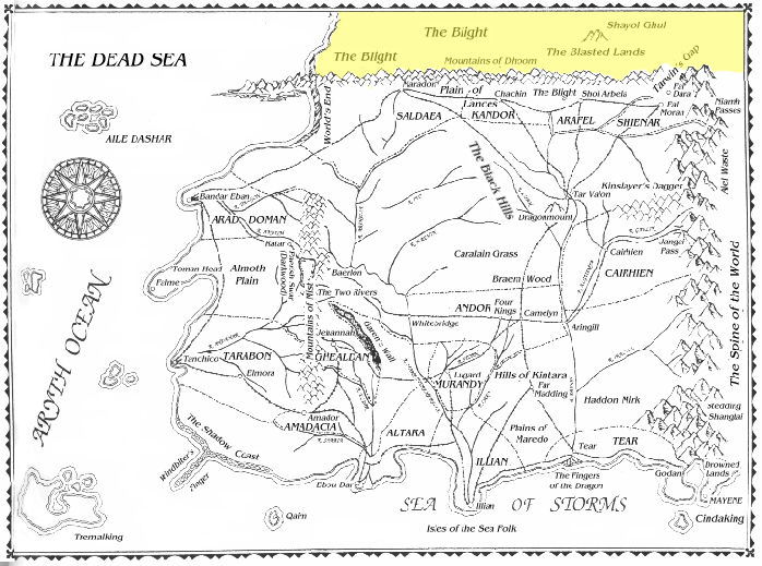 Saldaea, Arafel, Shienar, and Kandor share the Blightborder, and are charged with guarding it. This list once included Malkier, though it was overrun by the Blight. Save for several manned garrisons and watchtowers, no nation maintains a permanent settlement within the Blight.