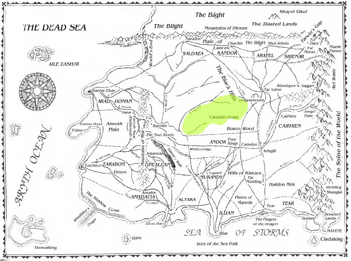 The Caralain Grass was once more densely populated, with the kingdom of Coremanda (one of the Ten Nations destroyed in the Trolloc Wars) claiming its full extent. It was later divided between the kingdoms of Dal Calain, Aldeshar and Caembarin during the Free Years.