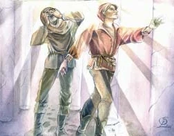 Rand al'Thor and Muradin passing through the glass columns of Rhuidean