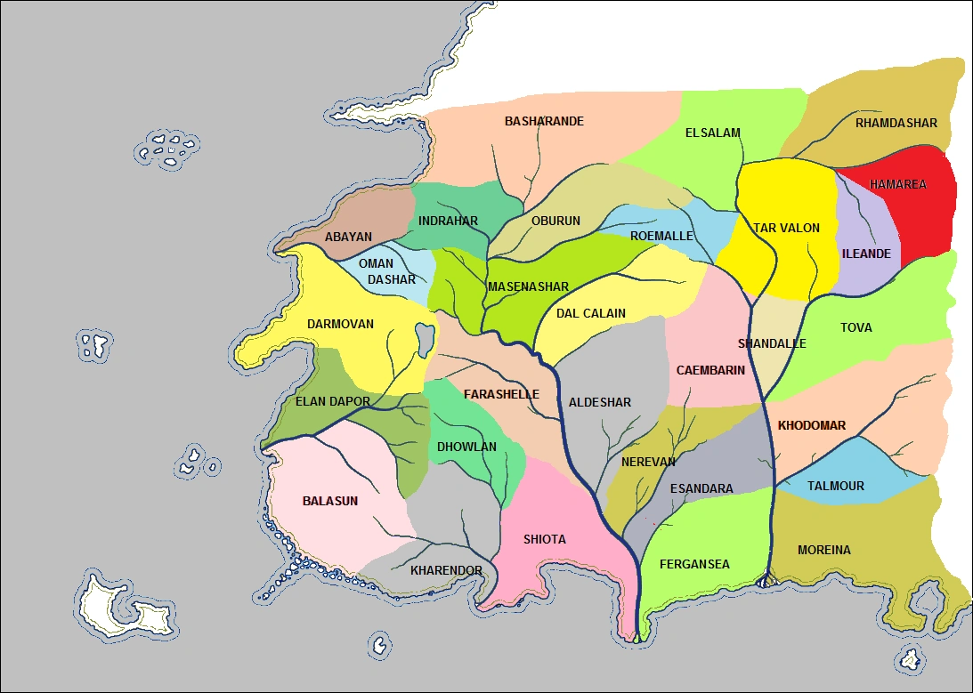 | Free Years | Abayan · Aldeshar · Balasun · Basharande · Caembarin · Dal Calain · Darmovan · Dhowlan · Elan Dapor · Elsalam · Esandara · Farashelle · Fergansea · Hamarea · Ileande · Indrahar · Kharendor · Khodomar · Masenashar · Moreina · Nerevan · Oburun · Oman Dashar · Rhamdashar · Roemalle · Shandalle · Shiota · Talmour · Tova | ||