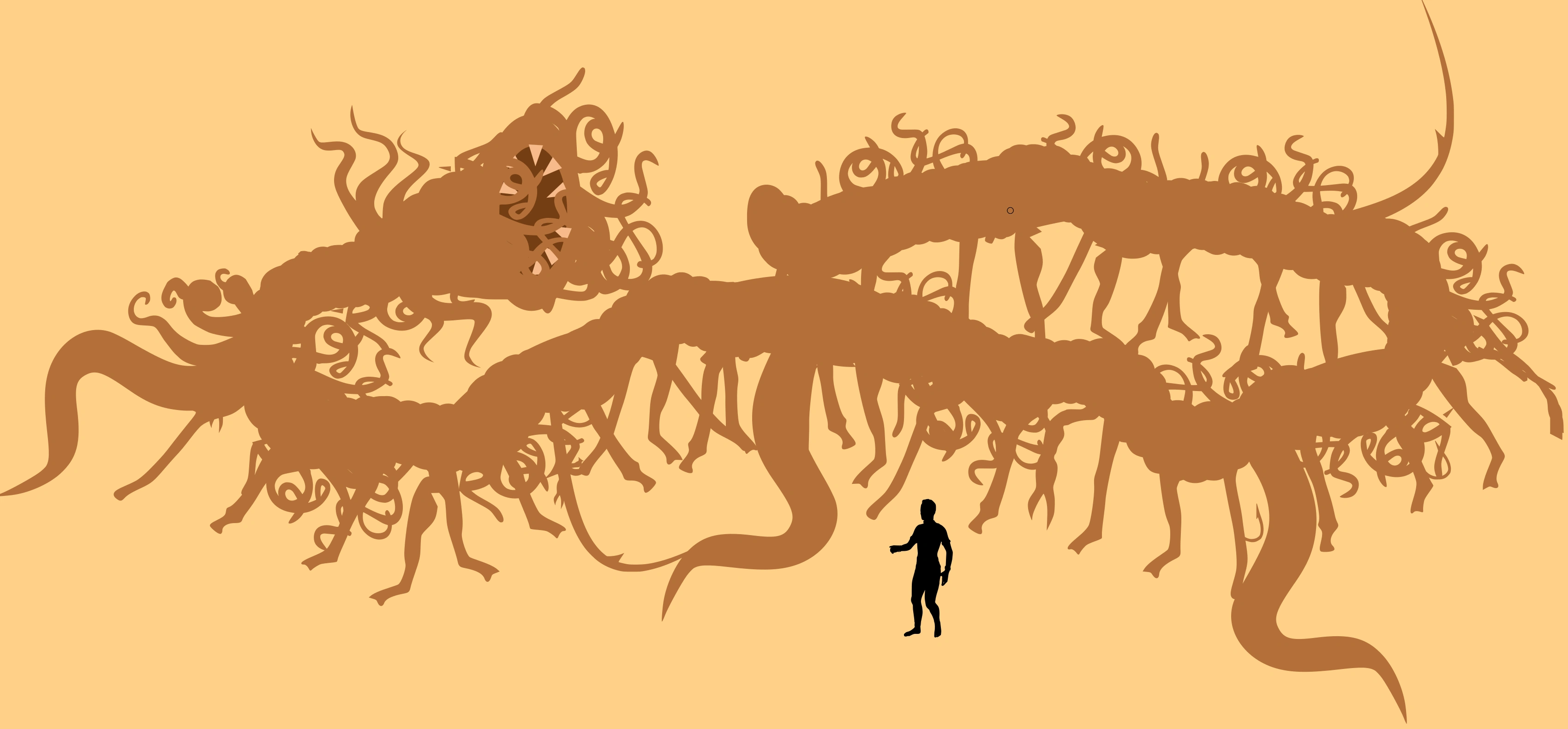 Depiction of size of a transformed jumara relative to a human male by Chris Moorhead.