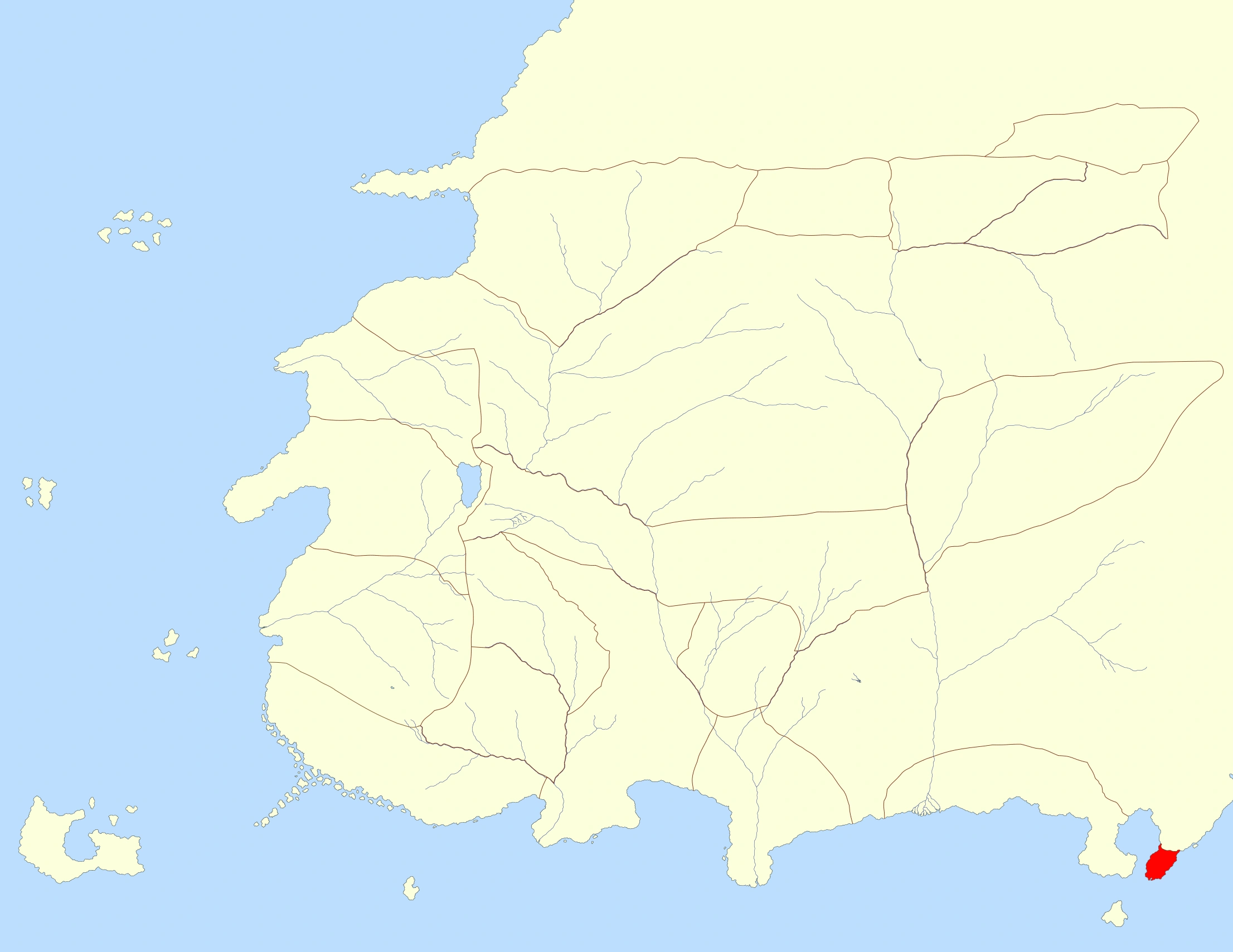 The Mayener peninsula forms the eastern and southeastern edge of the Bay of Remara, and is cut off from the mainland by the Drowned Lands, a hostile swamp impassable to large armies. The peninsula does not appear to be easy to invade by sea either, forcing any attack to come through the city itself, which is defended by stout walls and formidable defenses.