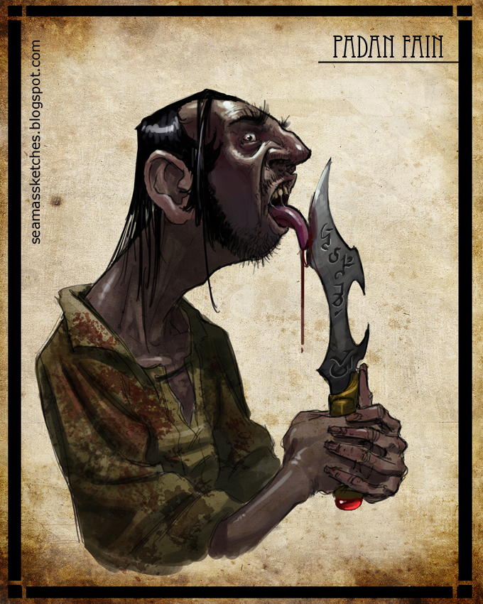 Padan was one of the most dangerous creatures in the known world, as dangerous as any Forsaken. He could corrupt people by just being in their presence. He could sense fear and tension and could recognize a Darkfriend on sight. He had also developed a way of inflicting pain by touch, from levels of "merely" harmful to deadly.[9] Eventually, he recovered the dagger (his primary interest) in Tar Valon;[10] feeling complete with it. He was very likely insane and was wanted by the Shadow. Slayer was sent to the Two Rivers to kill him but failed when Perrin interfered.