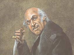 Fain is pale and skinny with gangly arms. He has a large beak of a nose and wide ears.