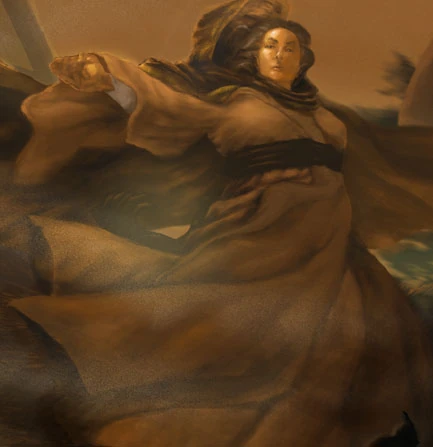 Verin is one of the 14 Aes Sedai - the other Brown being Serafelle - who accompanied Siuan Sanche to Fal Dara. After an assault by Shadowspawn on Fal Dara, during which the Horn of Valere was stolen, she copied (with Serafelle) the Prophecy of the Shadow (written by one of attackers on the walls of the dungeon) and interpreted it for Siuan and Moraine. She correctly guessed that the verse "The man who channels stands alone" referred to the Dragon Reborn and that one of the three ta'veren must be him, which caused Siuan and Moiraine to briefly consider detaining her before bringing her into a level of trust.[10] Later on, she elected to follow the three ta'veren in their attempts to recover the stolen Horn, rather than return to Tar Valon.[11] She claimed that Moiraine asked her to accompany them, but Moiraine later said she did nothing of the sort. During her travels, Verin offered Rand al'Thor a hint at how to activate the Portal Stones. As a result, Rand propelled the entire party into a series of painful visions about the alternate lives they could have lived.[8] Upon reaching the cape town of Falme, Verin sent Rand,with Matrim Cauthon, Perrin Aybara, Ingtar Shinowa, and Hurin to recover the Horn and Mat's dagger, which fulfilled a passage from the Karaethon Cycle.[12]
