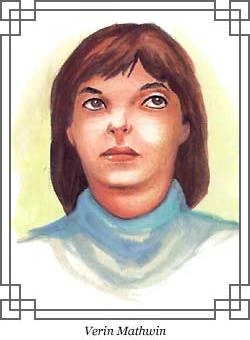 Verin Mathwin (pronounced: VEH-rihn MATH-wihn) was an Aes Sedai of the Brown Ajah. Although she presented herself as somewhat scatterbrained like the typical Sister of her Ajah, Verin was extremely sharp and intuitive. She was a scholar with an impressive amount of knowledge about obscure or esoteric fields, such as the Portal Stones, the Age of Legends, and Tel'aran'rhiod.