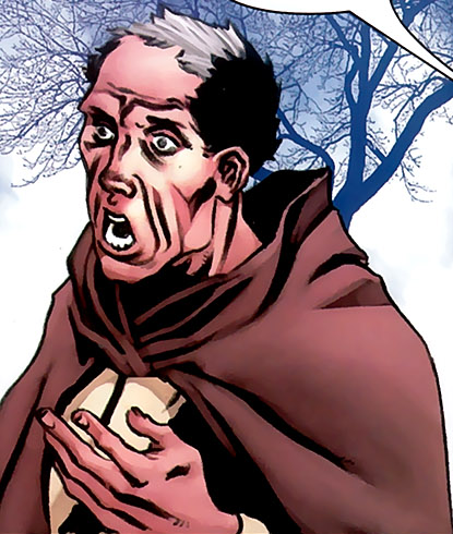 He is a short scrawny individual who usually displays a sour expression to those with whom he interacts. His wife is twice as wide as him and generally overshadows him, both physically and otherwise.[1][2]